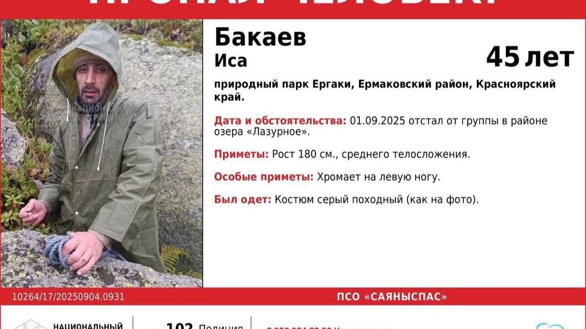 Родные пропавшего в "Ергаках" туриста обещают 1 млн за информацию о нем Проспект